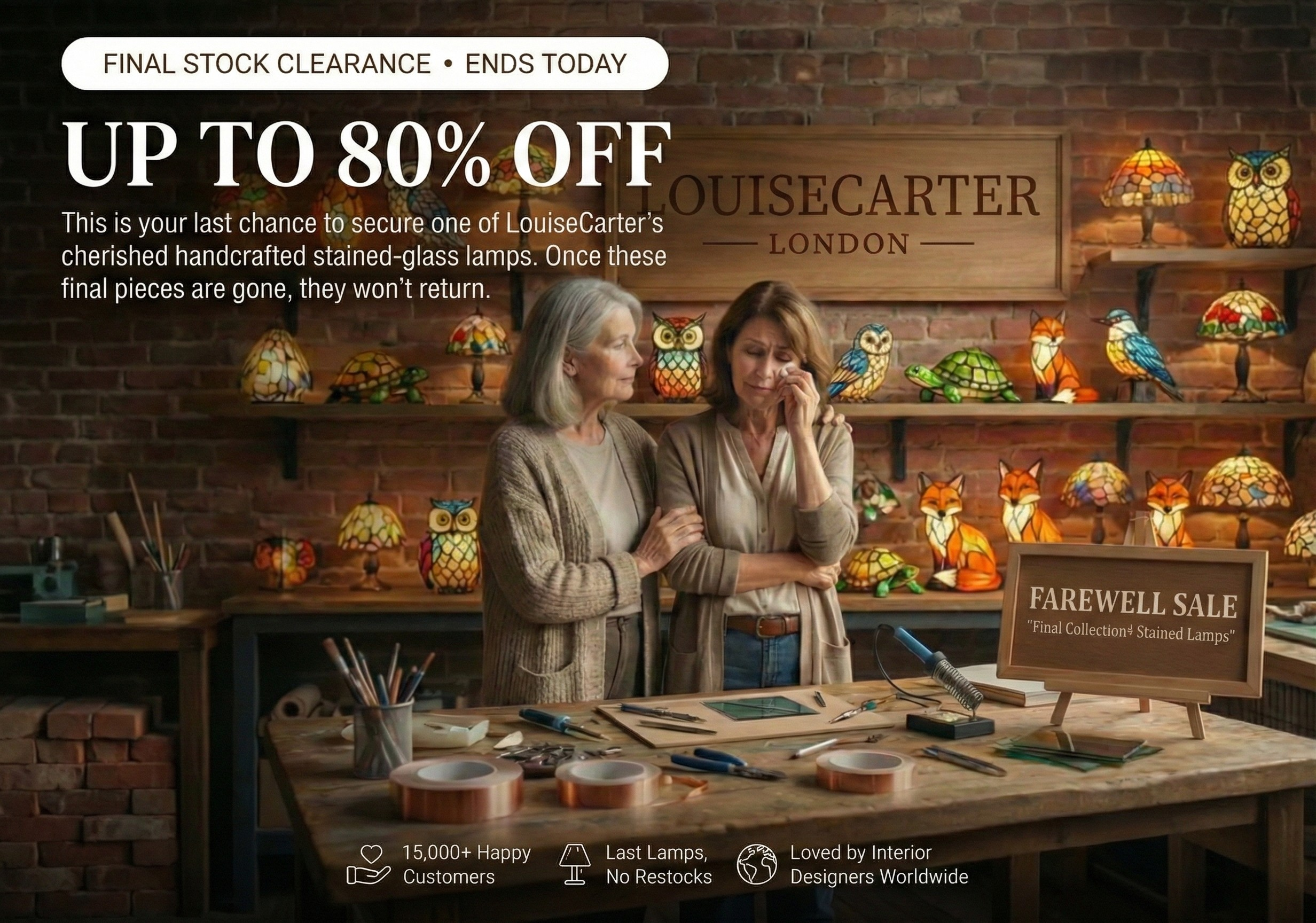 Now, with only a limited number of handcrafted lamps remaining, we’re letting them go so they can continue their story in your home — with savings of up to 80%, until the final pieces find their forever place.